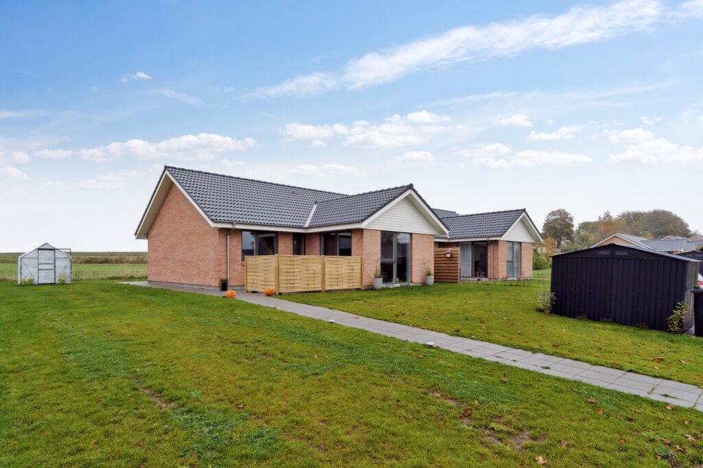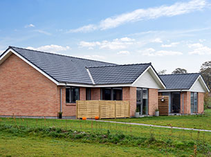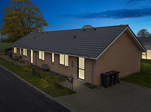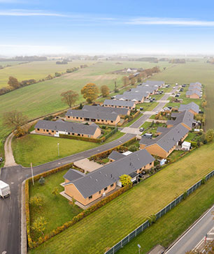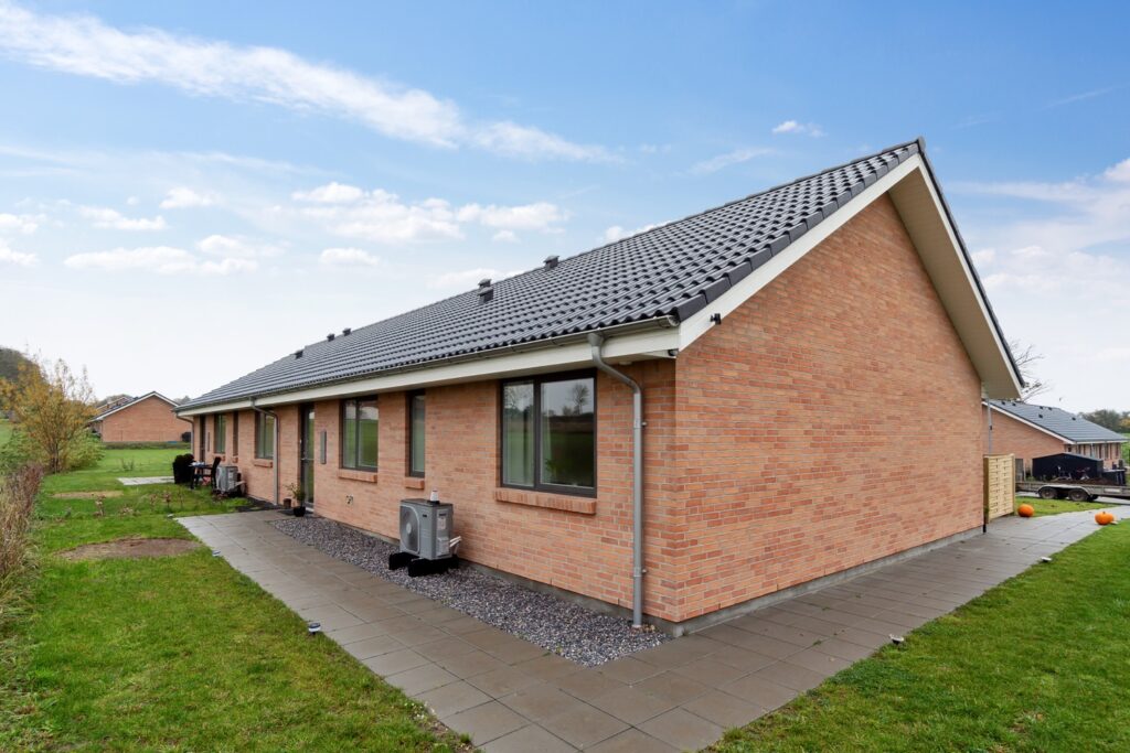 Ejendommene er opført af HusCompagniet i de bedste materialer, med sort sadeltag og smukke røde sten fra Strøjer Tegl.